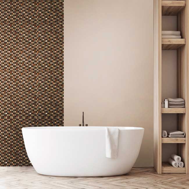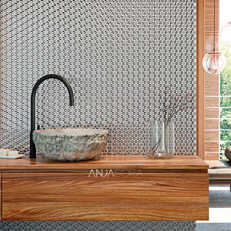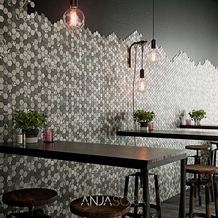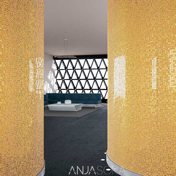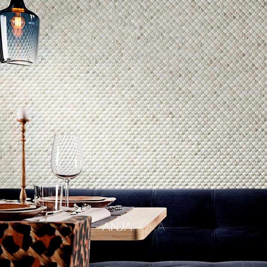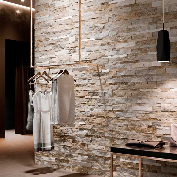 Anjasora — испанская плитка из натурального и жидкого камня. Стекловолокно, сланец и полиэстер, используемые в изготовлении, обеспечивают продукции сопротивление теплопередаче и пространственную стабильность.