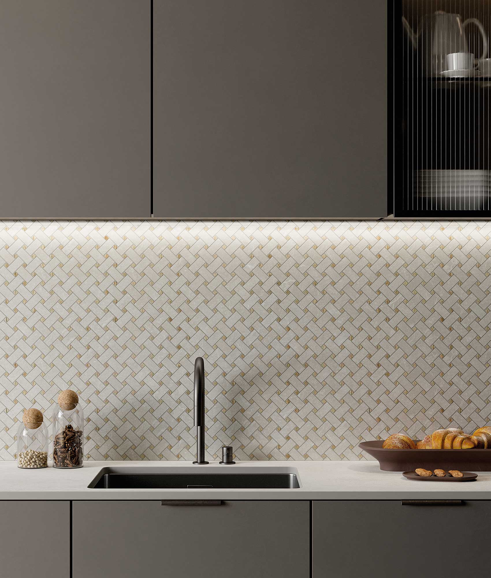 Noble Stone Taupe Mosaico Basket 29.7x29.7