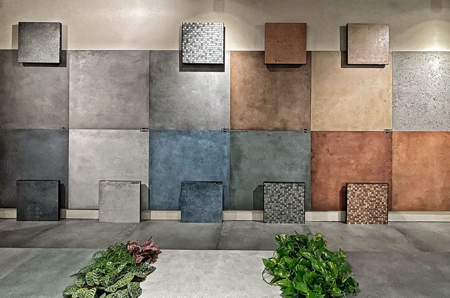 В этом году производители также сделали акцент на глубокие, сложные цвета, которые стали важным элементом дизайна интерьеров. Эти оттенки использовались как в глазурованной керамике, так и в керамограните с эффектом штукатурки, бетона и даже ткани.