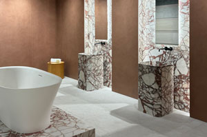 Кроме того, мрамор и травертин, представленные в разных вариациях, стали основной базой для новых коллекций, прекрасно сочетающихся с трендовыми цветами и текстурами.
