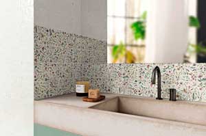Переходя от настенных образцов предлагаем вашему вниманию коллекцию напольной плитки Meraki. Она идеально дополняет предыдущую Lagoon. Вроде бы большая холодная текстура бетона, но как же она уютно смотрится с мелкоформатной, подходящего цвета. Навеянная городским урбанистическим стилем, коллекция напольной плитки Meraki может подстраиваться в самые разные интерьеры. В ней представлено 9 вариаций, среди которых представлены как классические нейтральные оттенки, так и современные яркие.